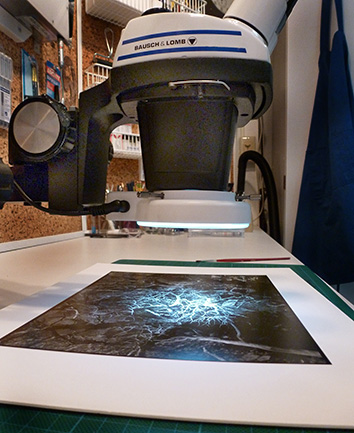 These are the refinements that I have found that make things easier and more convenient for the way I work. Be good to yourself and your eyes, let alone your art. I keep saying the same thing over and over, you can’t go wrong using a stereo microscope for spotting prints and negatives! Any microscope is better than none, or struggling with another type of magnifier. Hopefully this information will help get you started.