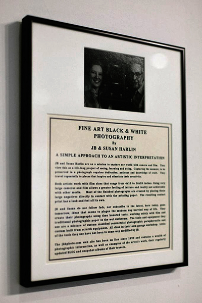 We would like to thank everyone that joined us for the opening reception of our exhibition, “TRADITIONAL BLACK & WHITE PHOTOGRAPHY BY JB & SUSAN HARLIN” March 20th. We had a nice crowd during the evening and everyone had a great time.