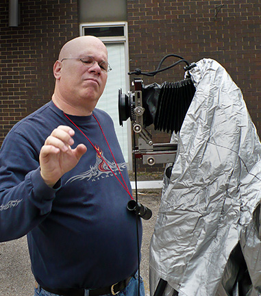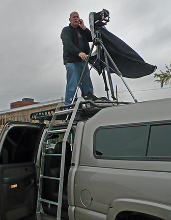 We tend to photograph in remote locations. We are always climbing over rocks, and are knee deep in mud or snow. One of the first packs I used was a really well-made and versatile Art Wolfe design that was perfect for a 4×5. The pack had a small webbing loop at the top and I soon found myself hooking it to one of the knobs on my Zone VI tripod. Worked great!