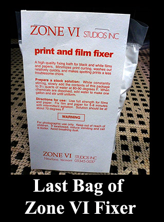It has finally happened! I have used Zone VI chemicals for well over twenty five years now. Though we have moved on to different formulations for finished prints, we have continued to use Zone VI Print Developer for proofing. That is. . . until now. I mixed the last bag for proofing our 2015/2016 trip and that is that. This has been a looming change that has been in the back of my mind for several years now and it finally came time to do some testing. OH Drat. . . TESTING!!!